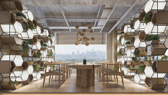 辦公區(qū)域的設(shè)計(jì):設(shè)計(jì)師在設(shè)計(jì)的時(shí)候,由于是開(kāi)放式的辦公空間,故此設(shè)計(jì)師在設(shè)計(jì)的時(shí)候,采用地標(biāo)來(lái)劃分每個(gè)區(qū)域的勢(shì)力范圍,由此企業(yè)內(nèi)部的各部門得以劃分,一個(gè)小小的創(chuàng)意一來(lái)為裝修節(jié)約了成本,另一方面為辦公空間預(yù)留了足夠的活動(dòng)空間。