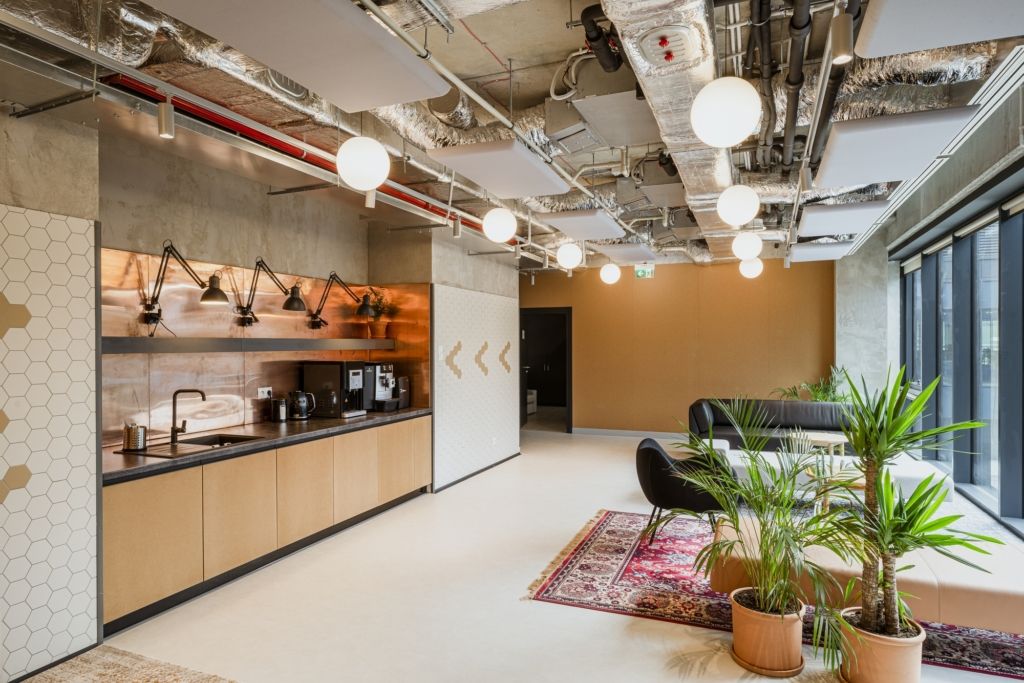 辦公室旅行的下一階段是加油站。公共區(qū)域的一個(gè)部分是電池充電的地方--手里拿著一杯咖啡。就在它旁邊,我們有自助餐廳,靈感來(lái)自路邊的酒吧。最后,公共區(qū)域的最后一部分是海灘,專(zhuān)門(mén)用于休息和合作。位于中心位置的公共空間既能整合近300名工作人員,又能保持工作區(qū)域的平靜。我們?cè)谀抢镆灿腥齻€(gè)不同的區(qū)域:一個(gè)舒適的,私密的辦公室,優(yōu)雅的汽車(chē)內(nèi)飾和一個(gè)原始的,極簡(jiǎn)的,絕對(duì)是最“辦公室”的閣樓。