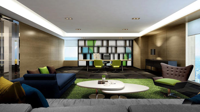 接待區(qū)域的設(shè)計(jì):設(shè)計(jì)師在設(shè)計(jì)的時(shí)候,將其安置在大廳與辦公區(qū)域之前的小空間中,設(shè)計(jì)師希望將空間合理的進(jìn)行運(yùn)用,同時(shí)進(jìn)一步加快各個(gè)區(qū)域之間的交流與聯(lián)系,進(jìn)一步完善企業(yè)辦公的各個(gè)流程,在此地客戶可以感受到企業(yè)的理念,對(duì)企業(yè)有更進(jìn)一步的了解。