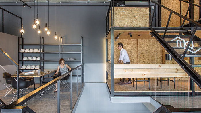 LOFT風(fēng)格辦公室辦公區(qū)設(shè)計(jì):二樓被設(shè)計(jì)師分為左右兩邊,且兩邊沒有任何交集,中間被幾十公分的空隙隔離,設(shè)計(jì)師希望讓相互之間產(chǎn)生一絲距離,正所謂距離產(chǎn)生美,彼此之間留有一點(diǎn)點(diǎn)距離也是挺美好的。
