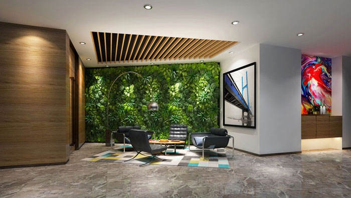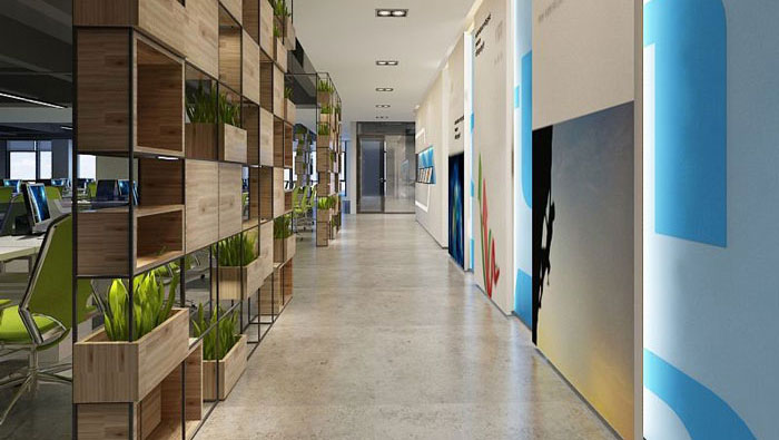 過(guò)道的設(shè)計(jì),設(shè)計(jì)的一大亮點(diǎn)是綠植與木材搭建的隔斷,一則時(shí)尚,二則創(chuàng)新,為空間帶了各種新穎的元素。