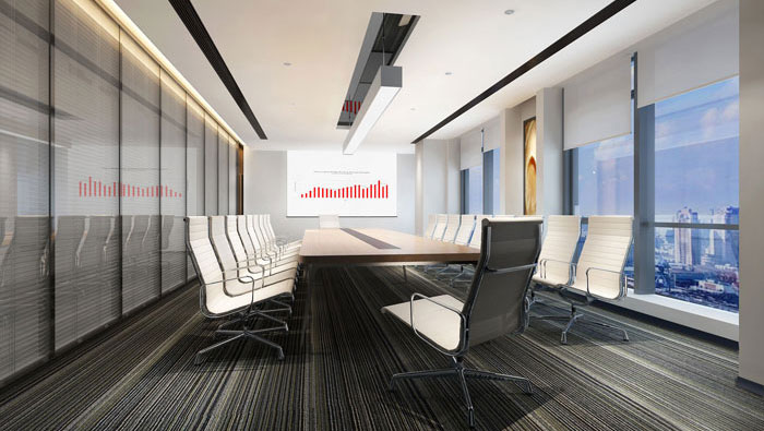 會(huì)議室的設(shè)計(jì),咋看之下屬于暗色系,這也是設(shè)計(jì)師故意為之,暗色系其中設(shè)計(jì)師加入了亮色系的元素,比如燈光、辦公椅、光源的采用,其目的就是平衡,平衡空間中的各種元素。