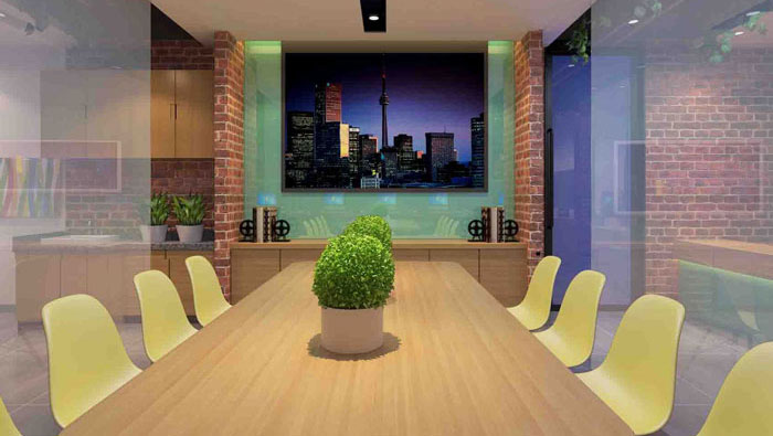 會(huì)議室與茶水間被設(shè)計(jì)師劃分在一個(gè)區(qū)域,意在擴(kuò)大其使用作用,會(huì)議室忙時(shí)做會(huì)議之用,閑時(shí)做休息區(qū)之用,做到一舉兩得,可以與茶水間更好地進(jìn)行配合與互動(dòng)。