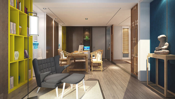 總經(jīng)理辦公室的設(shè)計,設(shè)計師在設(shè)計的時候,重點在于提升總經(jīng)理本人的心境,因為任不光是要向外學習,同時還需要向內(nèi)學習,設(shè)計師希望通過空間禪意+簡約的設(shè)計手法,讓總經(jīng)理在簡約的空間中,領(lǐng)悟禪意的精髓,完善自己的心境。