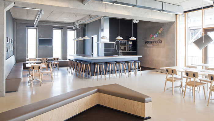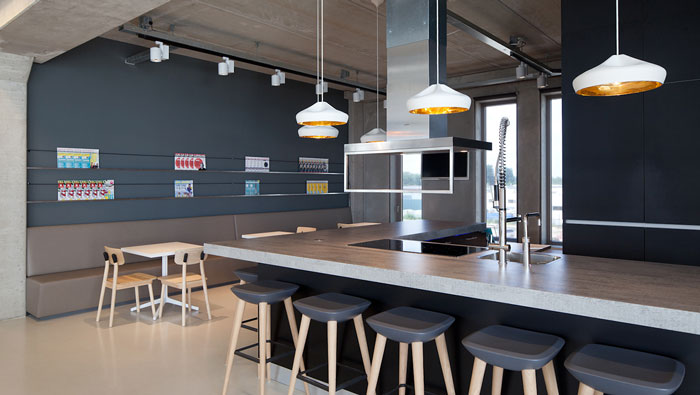 現(xiàn)代簡約辦公室吧臺(tái)設(shè)計(jì):在設(shè)計(jì)中設(shè)計(jì)師采用的是全封閉的設(shè)計(jì)理念,將茶水間所有裸露在外部的設(shè)施安置在吧臺(tái)之內(nèi),目的就是屏蔽所有一切的不和諧,讓空間在整體上更加的自然、簡潔,此處休息、接待、洽談、交流、學(xué)習(xí)應(yīng)有盡有,空間的融合度極高也提高了辦事效率。