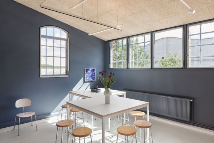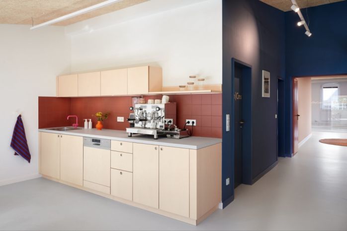 這一概念非常重視自給自足的辦公空間,這種空間散發(fā)著寧?kù)o和寧?kù)o的氛圍,有利于集中工作,而不讓周圍的環(huán)境顯得無人問津。經(jīng)過翻修的老建筑占地460平方米,提供了結(jié)構(gòu)良好但開放的工作區(qū)域,可容納約40個(gè)工作場(chǎng)所。空間概念的補(bǔ)充是一個(gè)大會(huì)議室,一個(gè)工作室,可以靈活地用于車間,幾個(gè)小型會(huì)議室,一個(gè)誘人的公共廚房和一個(gè)舒適的休憩區(qū)。