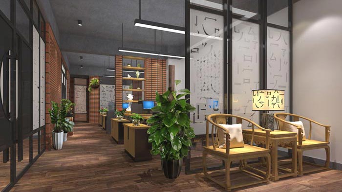 本次為現(xiàn)代中式風(fēng)格辦公室裝修設(shè)計(jì)項(xiàng)目,此處項(xiàng)目為大學(xué)中文系辦公室,設(shè)計(jì)師在設(shè)計(jì)之初,就與校長(zhǎng)和中文系的負(fù)責(zé)人做了一次深入的交流,在交流的過(guò)程中設(shè)計(jì)師了解到,校方希望打造一個(gè)適合中文創(chuàng)作的場(chǎng)所,校方希望將中文文化發(fā)揚(yáng)光大,讓中文文化在此重見(jiàn)光彩。