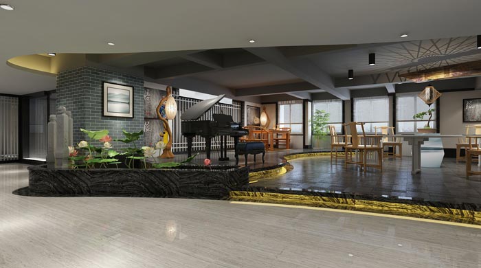 走廊的設(shè)計:此次是從前臺進(jìn)入室內(nèi)的過渡區(qū)域,設(shè)計師在設(shè)計中除了保證動線的暢通之外,在其中加入了花草和綠植,目的就是希望為空間帶來自然的氣息,中式本身就與自然想合,在加上自然的寵兒(花草)、禪意的佛像,希望在客戶的心中留下一絲漣漪。