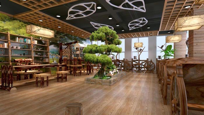 休息區(qū)域的設(shè)計(jì):此處的設(shè)計(jì)以中式軟裝為主題,其中柏樹(shù)傲立于中央,此處給人的感覺(jué)仿佛如畫(huà)中一般,給人很不真實(shí)的感覺(jué),從不真實(shí)到真實(shí)的呈現(xiàn)在大家面前,讓人的心理從模糊到清晰,從清晰到喜愛(ài),從喜愛(ài)到關(guān)注,從關(guān)注到深入其中,心理的不斷轉(zhuǎn)變讓人忘卻俗世的煩惱,對(duì)精神進(jìn)行一次升華。