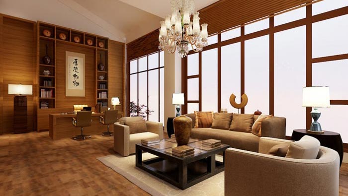 董事長辦公室的設(shè)計:此次與總經(jīng)理辦公室有點相像,不同的空間面積不在一個重量級上,這樣說明了董事長的絕對權(quán)威,空間格局類似的目的就是希望上下齊心,齊心協(xié)力為企業(yè)發(fā)展做出貢獻,“厚德載物”也展現(xiàn)出對董事長本人的期望,如大地一般修煉自己的胸懷。