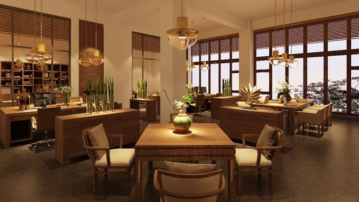 辦公區(qū)域的設(shè)計:設(shè)計師在設(shè)計中將中式繁雜的設(shè)計化簡為繁,在簡約中加入中式風格,讓兩個風格可以互相融合,在設(shè)計師看來融合不僅僅是表現(xiàn)的融合,而是需要在細節(jié)上一點點的進行校正與融合,也只有這樣才能保證空間的協(xié)調(diào),暖色系的加入為空間帶來了溫馨的空間氛圍。