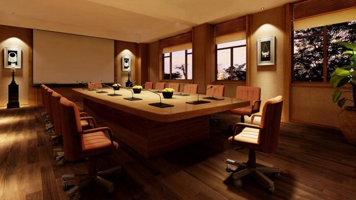 會議室的設(shè)計:此處融合了中式風格的穩(wěn)重、簡約風格的化繁為簡、暖色系的溫馨舒適,在燈光的設(shè)計上采用了中式含蓄的作法,將燈光都精準的定位于某一個區(qū)域,目的就是為了避免燈光對人造成影響,希望通過精準的定位燈光,既保證空間的照明有讓人可以靜下心來。