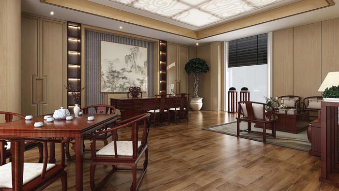 接待區(qū)域的設(shè)計:此處是一個中式現(xiàn)代家具的集合區(qū),中式現(xiàn)代家具以其優(yōu)美的線條、多變的曲線、靈秀的圖案、點到為止的制作技藝,加上符合現(xiàn)代人需求的時尚元素和個性化,令審美視線不斷跳躍,古樸和時尚融為一體,此處即為接人待客,又展現(xiàn)企業(yè)為人處世的內(nèi)涵。