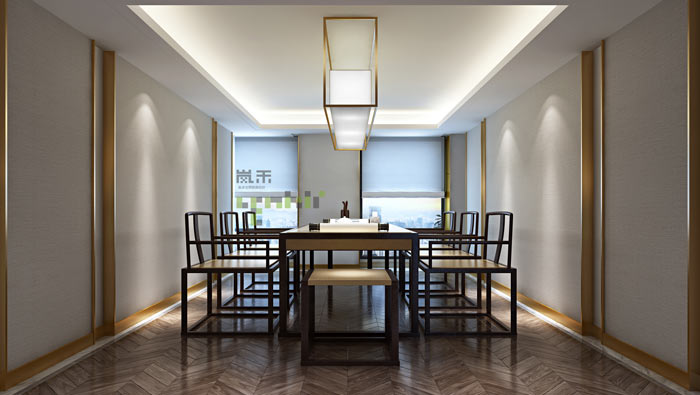 新中式辦公室茶室設計:茶室一來是企業(yè)內部所用,二來是接待客戶之用,兩者之間隨著使用的不同情景也不同,內部使用在于凈化員工的心靈,外部使用在于提升企業(yè)的品質。