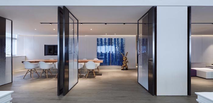 節(jié)能公司辦公室休息區(qū)設(shè)計:隔斷門全部關(guān)上之后,辦公空間與此處空間被隔離開來,開放與不開放全在門的開與合之間,一切都是那么輕松與自然。