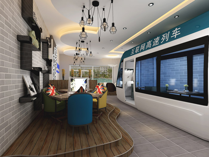 縱觀整個(gè)空間,給人的第一感覺就是顛覆,原來空間還可以這樣設(shè)計(jì),這真是顛覆了以往的認(rèn)知,一節(jié)動車車頭出現(xiàn)在空間中給人的感覺可想而知,在設(shè)計(jì)師看來動車與互聯(lián)網(wǎng)有一樣的屬性——快,同時(shí)動車也是時(shí)代的產(chǎn)兒,設(shè)計(jì)師希望以此寓意企業(yè)成為時(shí)代的產(chǎn)兒穩(wěn)步的發(fā)展。