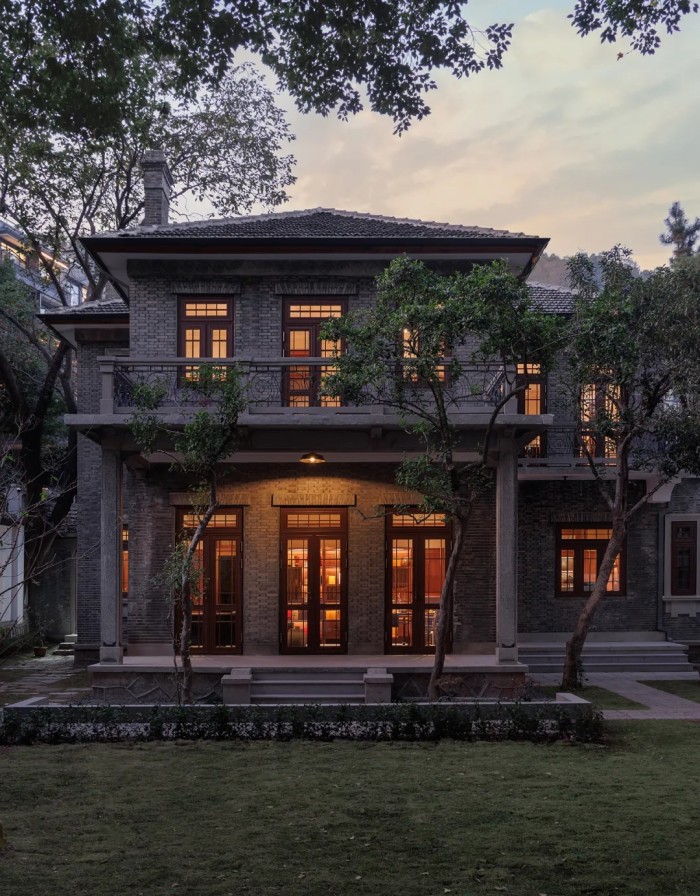 接到業(yè)主的委托來到現(xiàn)場,屋前是西湖北里湖的波光,屋后是香格里拉酒店的燈火。一座二層四開間的花園小樓,青磚清水墻坡頂平瓦四落水設(shè)計,門窗飾以新古典風(fēng)格的門套和窗套,共同勾勒出一幅經(jīng)典民國畫卷,心中感到莫名的敬畏與喜悅。