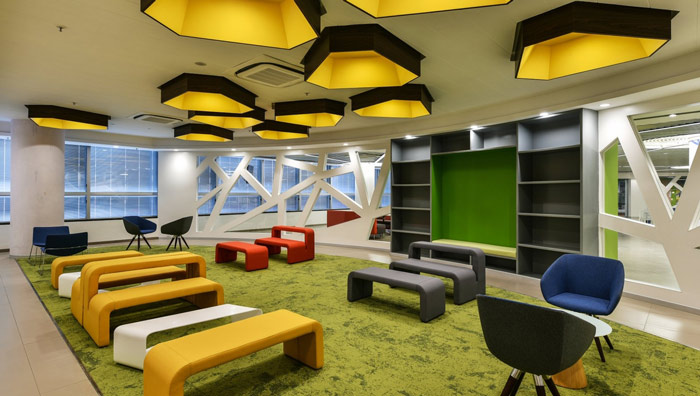 廠房辦公室休息區(qū)設(shè)計:空間這樣的場景隨處可見,此次的設(shè)計與會議室如出一轍,設(shè)計師打破阻隔將區(qū)域完全融入空間之中,即減少了造價,同時也將空間合理使用達(dá)到最大化。