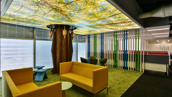 廠房辦公室洽談區(qū)設(shè)計:此處設(shè)計師人為的創(chuàng)造出一片綠意盎然的環(huán)境,目的就是希望讓空間擁有綠色,相信在這樣的空間中洽談,對于雙方都是一個不錯的選擇,美好的環(huán)境拉近雙方的距離。