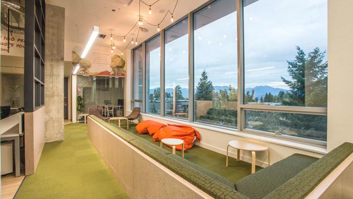 左側(cè)休息區(qū)域的設(shè)計:這是位于左側(cè)的其中一個休息區(qū)域,設(shè)計師在設(shè)計的時候,在每一個空間與空間之間都有一個類似這樣的休息區(qū)域,這樣做的好處就是可以滿足相對應(yīng)企業(yè)員工的休息需求,而且這些區(qū)域不屬于任何空間,這也是此次設(shè)計中的一大亮點,窺一斑而知全貌、人性化的設(shè)計在此展漏無疑。