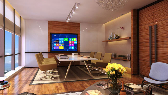 會(huì)議室的設(shè)計(jì),設(shè)計(jì)師以背景墻大片屏幕或彩繪為第一元素,期望讓空間更加炫目,在同時(shí)則是延續(xù)溫暖的風(fēng)格。