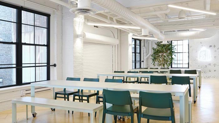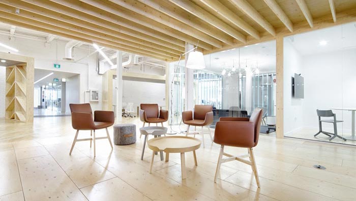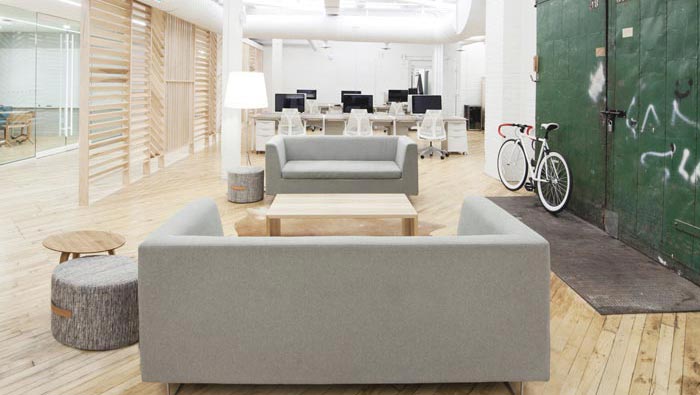電子商務辦公室空間連接設計:此處是區(qū)域和區(qū)域之間的連接處,通過此處可以進入每一個空間,這也是設計下來必然會形成的一個區(qū)域,故此設計師同樣利用軟裝的力量,在此處搭建了休息區(qū)、交流區(qū),即形成了一個全新的空間,又能保證空間的通暢運行。
