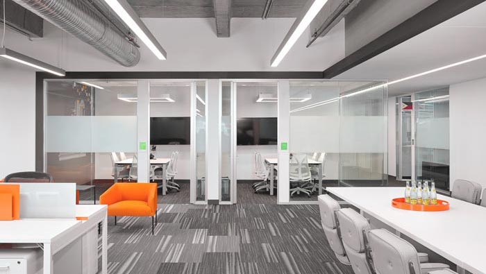 大、小會議室的設(shè)計:設(shè)計師在設(shè)計的時候,考慮到企業(yè)內(nèi)部多交流的現(xiàn)狀,故此將會議室拆分為大小會議室進(jìn)行設(shè)計,并特意將其安置在一個獨立的區(qū)域之內(nèi),小會議室可以為部門內(nèi)部之間提供溝通的平臺,讓問題都在部門內(nèi)部得到解決,大會議室就是在問題無法解決之時,部門與部門之間聯(lián)合起來一起來攻克難關(guān)。
