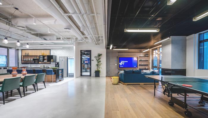 辦公區(qū)域的設計:此次是一個獨立部門的辦公空間,在這里設計師考慮到部門的特殊性,故此將空間利用隔斷一分為二,交流區(qū)域、匯報區(qū)域合成一處,這樣的設計不僅提升了辦公的效率,而且在員工勞累的時候,此處也可轉化為休息區(qū)域,讓員工在這里休息。