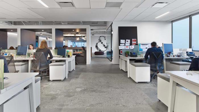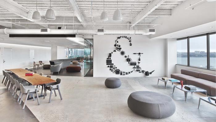 辦公區(qū)域的設(shè)計(jì):設(shè)計(jì)師設(shè)計(jì)此地是在劃分動(dòng)線之后,設(shè)計(jì)師將動(dòng)線自然向內(nèi)將空間分為兩半,這樣做即可以保證空間的通暢性,同時(shí)辦公區(qū)域的格局自然形成,設(shè)計(jì)師采用開(kāi)放式的設(shè)計(jì)手法將辦公桌安置在空間中,在滿足辦公需求的同時(shí)設(shè)計(jì)師也重點(diǎn)強(qiáng)調(diào)人性化的設(shè)計(jì)。