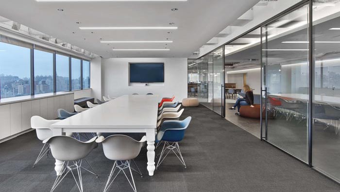 會(huì)議室的設(shè)計(jì):設(shè)計(jì)師將其安置在空間的一個(gè)獨(dú)立空間之中,此處與外部采用玻璃隔斷進(jìn)行分離,以此保證采光的完整性,同時(shí)窗簾的設(shè)置也可以保證會(huì)議室的私密性,在開(kāi)展會(huì)議的時(shí)候可以將外部窗簾拉上,就可以形成一個(gè)獨(dú)立的空間,空間中沒(méi)有一點(diǎn)雜質(zhì),有的只是簡(jiǎn)單,讓人的思想在空間中相互交匯。