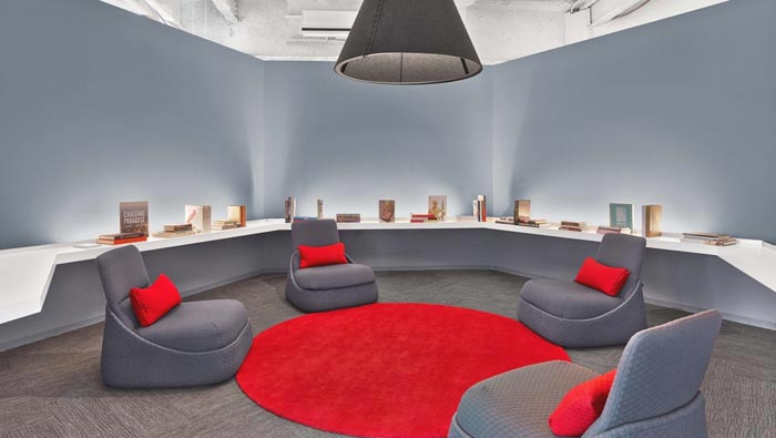 過(guò)道的設(shè)計(jì):此處位于辦公區(qū)域的前方,相當(dāng)于是一個(gè)過(guò)渡區(qū)域,但是設(shè)計(jì)師不忍心將此地浪費(fèi),故此將此地開(kāi)發(fā)成學(xué)習(xí)區(qū)域,此地差不多在空間的中心位置上,向前向后都十分方便,而且此處剛好向陽(yáng),讓學(xué)習(xí)的員工能在學(xué)習(xí)的過(guò)程中,感受到生活的美好。
