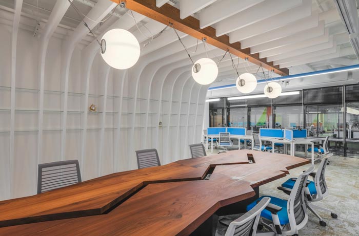 交流區(qū)域的設(shè)計:此處的目的就是希望為企業(yè)打造一塊可以交流的空間,滿足企業(yè)與客戶、企業(yè)內(nèi)部員工之間的交流,在設(shè)計師看來這樣的空間,可以在一定程度上拉近彼此之間的距離,讓人能夠最大限度的放下心中的戒心,像朋友一樣相互真誠的交流。