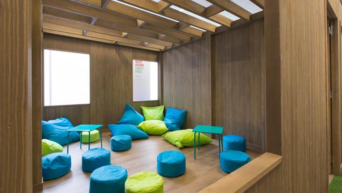 休息區(qū)域的設(shè)計(jì):設(shè)計(jì)師在設(shè)計(jì)中參考了釋放的理念,也是設(shè)計(jì)師的一種嘗試,在設(shè)計(jì)師看來(lái)休息區(qū)域本來(lái)就是要為員工一個(gè)無(wú)壓力的空間,故此設(shè)計(jì)師將設(shè)計(jì)完全刪掉留下一個(gè)空空的空間,讓空間有了更多的可能,將軟裝引入空間,讓員工隨自己的愛(ài)好進(jìn)行擺設(shè),也為員工營(yíng)造了一個(gè)無(wú)拘無(wú)束的空間。