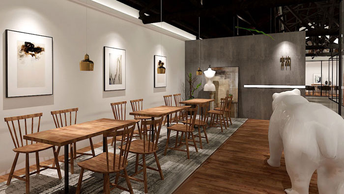 前臺、吧臺、展覽區(qū)被設計師融合在一起,成為一個新形的前臺的設計,在同時保持了整體設計的統(tǒng)一性,營造出一個溫暖明亮的前臺空間。