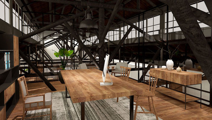 辦公區(qū)域更分為樓上和樓下,樓下的辦公區(qū)域,設計師采用了簡單的配比方法進行設計,將軟裝、功能、展示、綠植融合為一個整體。