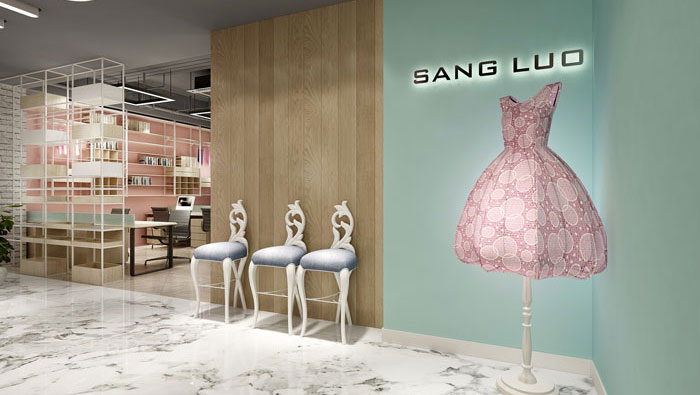 本方案為女裝公司辦公室裝修設(shè)計,企業(yè)的口號是既生動傳達了絲綢服裝具有的自然、環(huán)保、健康的信息,也形象描述了絲綢服裝獨特的柔軟高貴、華美典雅的品質(zhì),設(shè)計師在設(shè)計的時候從企業(yè)的實際需求出發(fā),粉紅色,粉色代表溫柔,一般多為女性喜愛,更加貼切、符合企業(yè)的產(chǎn)品。