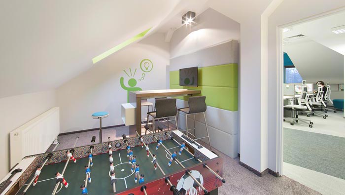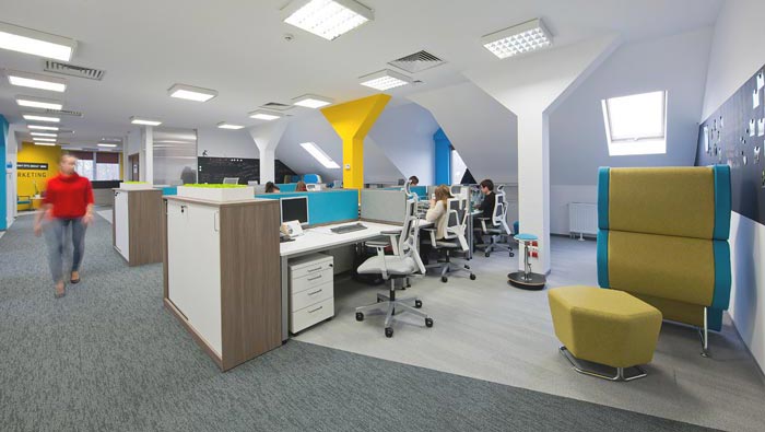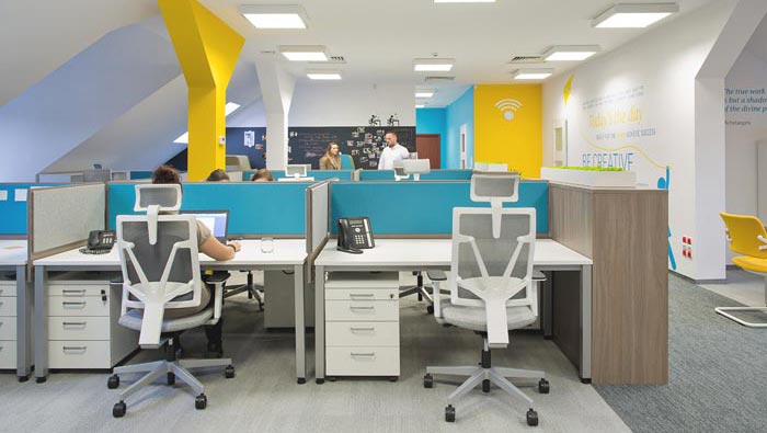辦公工位的設(shè)計(jì):設(shè)計(jì)師在設(shè)計(jì)的時(shí)候,在主體上采用的是開放式的設(shè)計(jì),在開放式的主體之下采用的是相對(duì)獨(dú)立的隔離設(shè)計(jì),設(shè)計(jì)師希望在整體上讓員工感受不到任何的束縛,縮短彼此之間的交流障礙,在細(xì)節(jié)上為員工打造一個(gè)獨(dú)立的辦公空間,讓員工可以有自己的小世界。