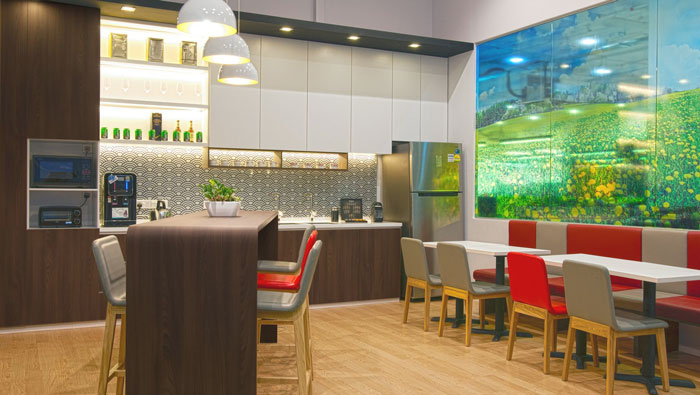 ? 茶水間的設(shè)計(jì):設(shè)計(jì)師在設(shè)計(jì)的時(shí)候,將其安置在一個(gè)獨(dú)立的空間之中,這樣設(shè)計(jì)的目的就是為了與外界隔絕,設(shè)計(jì)師希望讓員工在此處不會(huì)受到外界工作壓力的影響,設(shè)計(jì)師希望讓員工在此處相互之間交流與工作無關(guān)的話題,讓緊張的腦細(xì)胞得到緩解,設(shè)計(jì)師認(rèn)為辦公也需要一張一弛,這樣對(duì)于員工的創(chuàng)造性有很大的促進(jìn)作用。