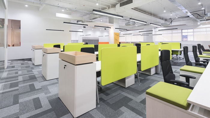 ? 辦公區(qū)域的設(shè)計(jì):設(shè)計(jì)師在設(shè)計(jì)的時(shí)候,在整體上依然采用了開放式的設(shè)計(jì)手法,只是在細(xì)節(jié)上做了一點(diǎn)小小的調(diào)整,就是在辦公桌的后方加上了可上可下的擋板,這樣的設(shè)計(jì)有效的規(guī)避了開放式空間的缺點(diǎn),在滿足辦公區(qū)域開放的同時(shí)也為其打造私人的辦公區(qū)域,為每一個(gè)人預(yù)留了個(gè)人空間。