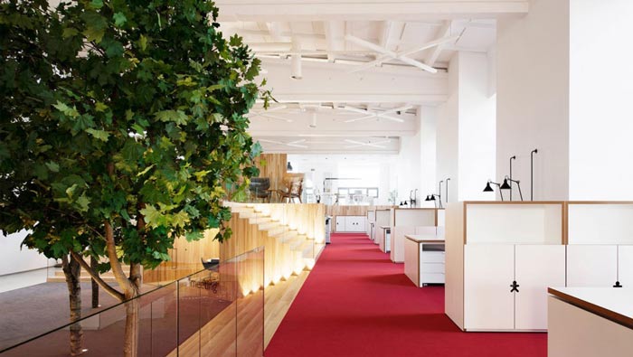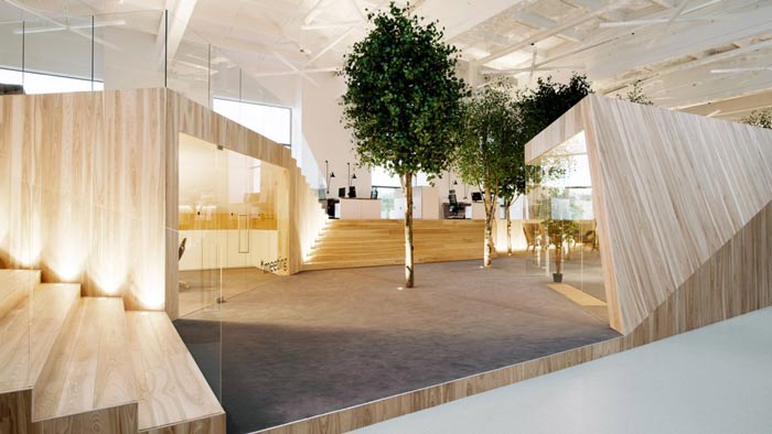 童裝公司辦公室動(dòng)線設(shè)計(jì):由此可以看出整個(gè)空間被分割成一個(gè)個(gè)開放的木制空間,設(shè)計(jì)師這樣做的目的就是希望整個(gè)空間沒有任何阻礙,大空間加上清新的空氣洗滌勞累的身心。