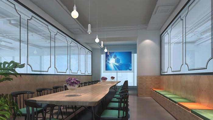 會(huì)議室的設(shè)計(jì),設(shè)計(jì)師在設(shè)計(jì)的時(shí)候,設(shè)計(jì)手法與辦公區(qū)域相同,不同的是排列順序,設(shè)計(jì)師在設(shè)計(jì)的時(shí)候?qū)⑵浒凑?ldquo;一字長蛇陣”排列,緊隨空間而變,同時(shí)化缺點(diǎn)為優(yōu)點(diǎn),既滿足會(huì)議的需要,同時(shí)又靈機(jī)一轉(zhuǎn)增加空間的承載能力,真是化腐朽為神奇。