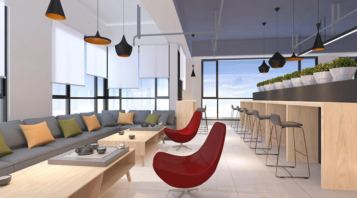 休息區(qū)域的設計:設計師在設計的時候,將休息與交流相互交融后展現(xiàn)在大家的面前,在設計師看來休息的時候也是企業(yè)員工內(nèi)部交流的時候,設計師希望通過這樣的設計讓企業(yè)內(nèi)部可以快樂融合,促進大家之間的友誼,同時此地也可以作為與客戶相互交談的場所,在此處可以讓客戶感受到家的氣息,以此增進與客戶之間的距離。