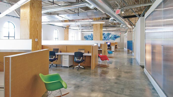 ? 辦公區(qū)域的設(shè)計(jì):設(shè)計(jì)師在設(shè)計(jì)的時(shí)候,采用現(xiàn)在流行的開(kāi)放式空間,同時(shí)又將其按照部門(mén)的不同劃分成幾個(gè)區(qū)域,這樣設(shè)計(jì)的好處就是一來(lái)保證空間的完整與開(kāi)放,二來(lái)有效的避免因?yàn)殚_(kāi)放帶來(lái)的弊端——嘈雜,在設(shè)計(jì)師眼中設(shè)計(jì)應(yīng)該因地制宜。