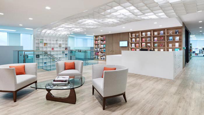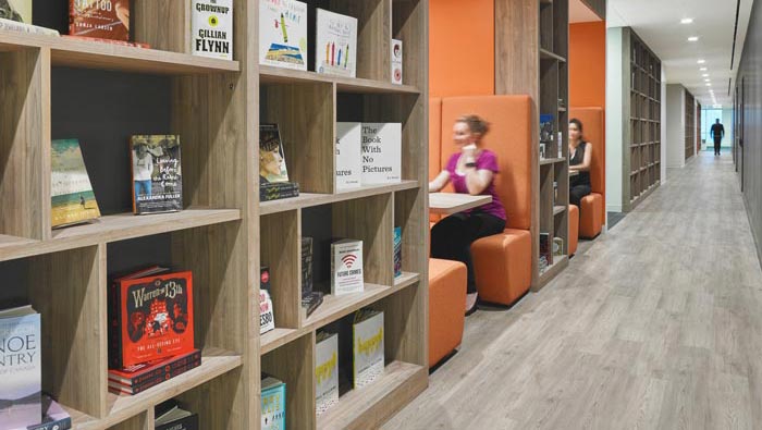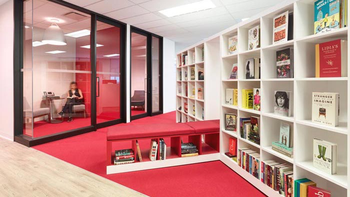 辦公區(qū)域的設(shè)計(jì):設(shè)計(jì)師在設(shè)計(jì)的時(shí)候,為了更加方便員工的編輯、收集、閱讀,設(shè)計(jì)師將辦公工位與書(shū)架結(jié)合在一起,這樣的好處就是讓員工與書(shū)籍之間沒(méi)有了阻隔,更加方便彼此之前的協(xié)作,公共工位有書(shū)桌式的、有沙發(fā)式的,讓員工可以按照自己的習(xí)慣進(jìn)行工作,讓員工在工作的同時(shí)更加貼近自己。