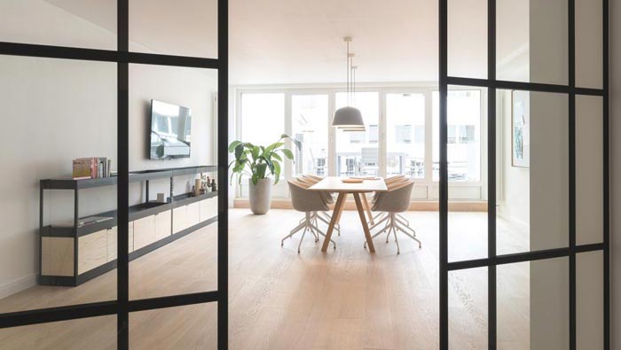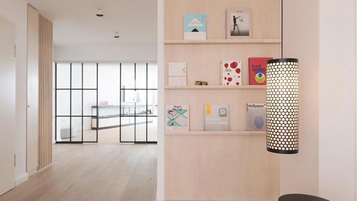 會(huì)議室的設(shè)計(jì):此處是一個(gè)多功能的辦公場(chǎng)所,此處與外部陽(yáng)臺(tái)連接在一起,這樣可以避免會(huì)議的單一性,因?yàn)闀?huì)議在很多人眼中單調(diào)、無味的,故此會(huì)議往往會(huì)起到消極的作用,故此設(shè)計(jì)師將會(huì)議室與陽(yáng)臺(tái)相互串聯(lián),就是希望以陽(yáng)臺(tái)的自然與開放,為會(huì)議提供更多的可能性。