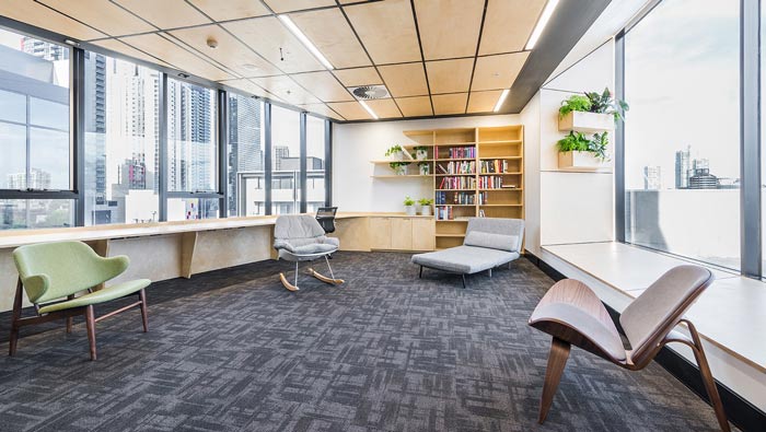 節(jié)能公司辦公室觀景臺設計:此處的陽光最為濃烈,也是空間中不可多得的觀景區(qū)域,當辦公勞累的時候,大家可以去陽臺展望一下都市的美景,伸伸懶腰、曬曬太陽,也不失為一種享受。