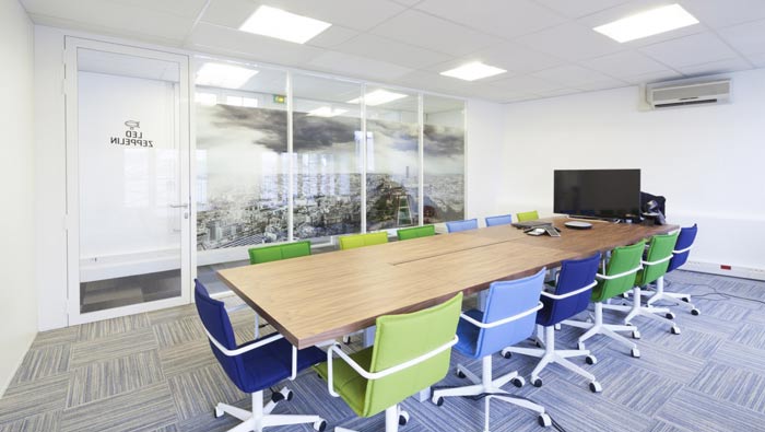 空氣環(huán)保公司辦公室會議室設計:會議室有玻璃隔斷阻隔而成,有意思的是在會議室剛好可以看到空氣污染帶來的嚴重后果,這也是設計師與客戶商量之后的結果,客戶希望企業(yè)隨時隨地要謹記自己的任務。