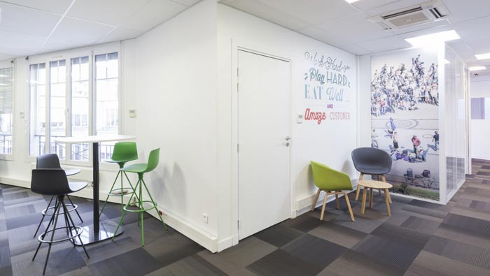 空氣環(huán)保公司辦公室交流區(qū)設計:此處空間本身是不規(guī)則的,所以無法將其改造成使用空間,但是設計師也不忍將其荒廢,估計利用軟裝的便捷與其進行搭配,目的就是希望打造一個隨時可以交流的空間。