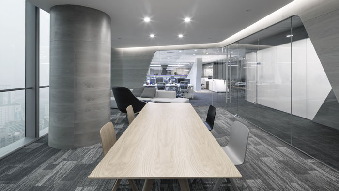 培訓(xùn)機構(gòu)辦公室會議室設(shè)計:灰色的地毯加上柔柔的燈光,讓整個空間顯得格外輕松,灰色猶如似亮非亮,燈光代表似亮非亮已經(jīng)成為過去,這表示著事情已經(jīng)解決,設(shè)計師希望通過這樣巧妙的設(shè)計,為會議的開展提供一絲助力,讓人、空間、設(shè)計可以合為一體。