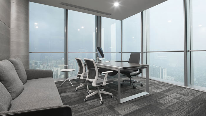 培訓(xùn)機構(gòu)校長辦公室設(shè)計:此處三面環(huán)繞落地窗,讓室內(nèi)與室外保持真正意義上的零距離,在校長辦公之余可以俯視整個城市的美景,這樣的方式不僅可以緩解辦公的壓力,同時也在逐漸養(yǎng)成一個人的大局觀,設(shè)計師希望設(shè)計可以變相的促進一個人的成長。